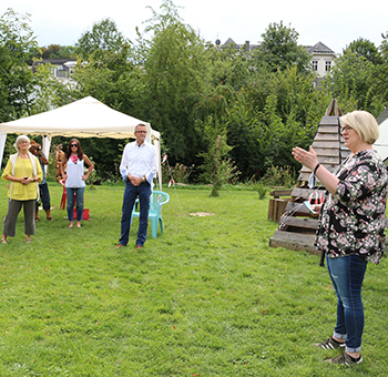 „Wir freuen uns über das große Interesse seitens der Kooperationspartner und der Politik. Wir konnten hier dank vieler Kooperationen mit vielen unterschiedlichen Netzwerkpartnern und Akteuren schon viel bewegen“, begrüßte Stefanie Theiß, eine der drei Geschäftsführerinnen der VSB gGmbH, die Anwesenden im Netz-Werk-Garten Waldbröl. Theiß freute sich, unter den Gästen Tülay Durdu, Landratskandidatin für den Oberbergischen Kreis, sowie Larissa Weber und Achim Bursche als Bürgermeisterkandidaten für Waldbröl begrüßen zu können. Des Weiteren gehörten zu den Gästen Vertreter verschiedener Gruppierungen, wie Oberberg ist bunt, Netzwerk gegen Rechts, der Freundeskreis Asyl, die örtlichen Kirchen, Diakonie und Caritas. Landrat Jochen Hagt und Bürgermeister Peter Köster, der sich zurzeit im Urlaub befindet, ließen sich entschuldigen.